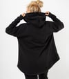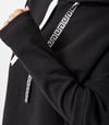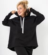Damen oversized Hoody in schwarz mit auffälligen Kordeln mit stylischem Print in Einheitsgröße , passend bei M - 3XL
