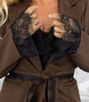 Damen Oversize Blazer in Braun mit Spitze und Bindegürtel – Elegante Jacke für festliche Anlässe | S - XL
