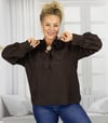 Braune oversized Bluse mit Schleife & goldener Brosche Einheitsgröße , passend bei M - 2XL