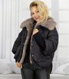 Schwarze oversized Bomber Winterjacke mit Kunstpelz | S - 2XL