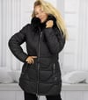 Damen Winterjacke Schwarz – Warme Steppjacke mit Kunstfellkragen & Reißverschluss