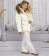 Winterjacke in weiß – Steppjacke mit Kapuze und Fellbesatz | M - 3XL
