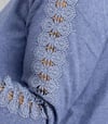 Blaues Strickkleid mit Stickerei, Perlen & Taschen | S/M + L/XL