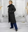 Doppelseitig tragbarer langer Mantel schwarz/silber