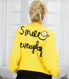Ein besonderes Highlight ist der Statement-Schriftzug „Smile Everyday“ auf dem Rücken in Kombination mit liebevollen Blumen-Applikationen, die der Jacke einen positiven, frischen und trendigen Look verleihen.