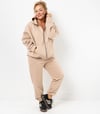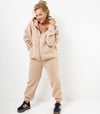 Beiger oversized Jogginganzug mit Kapuzenjacke in Einheitsgröße, passend bei M-4XL