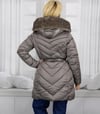 Damen Wintermantel mit Kunstfellkragen und Gürtel – Taupe