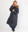Wintermantel lang Marineblau – Steppmantel mit Kunstfellkapuze | 3XL - 6XL