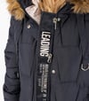 - Große Kapuze mit hohem Stehkragen und abnehmbarem Pelzbesatz – Schutz an frostigen Tagen und einfacher Stilwechsel