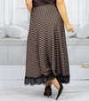 Brauner Polka Dots Maxirock mit Spitze – Eleganter Damenrock in Maxilänge | S - L